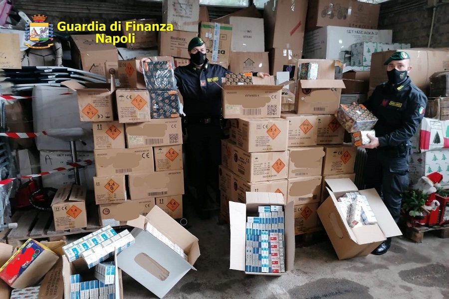 800Kg di botti illegali e altamente pericolosi sono stati sequestrati dalla Guardia di Finanza di Giugliano che ha anche tratto in arresto ad Afragola un 44enne. I botti, detenuti senza alcuna licenza né autorizzazione, erano custoditi in due depositi; in uno di essi c’erano anche 244Kg di sigarette di contrabbando.