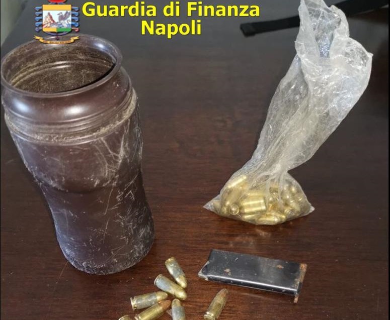 Durante la perlustrazione di un fondo agricolo i finanzieri di Castellammare di Stabia hanno scoperto 50 munizioni ed un caricatore nascosti in un barattolo del caffè. Il tutto era celato in una nicchia ricavata in muro che delimitava il terreno. Sono in corso accertamenti per individuare il proprietario del fondo. In particolare, il caricatore rinvenuto era perfettamente lubrificato e di recente fabbricazione. La scoperta è stata fatta in un’area montuosa, a Lettere.