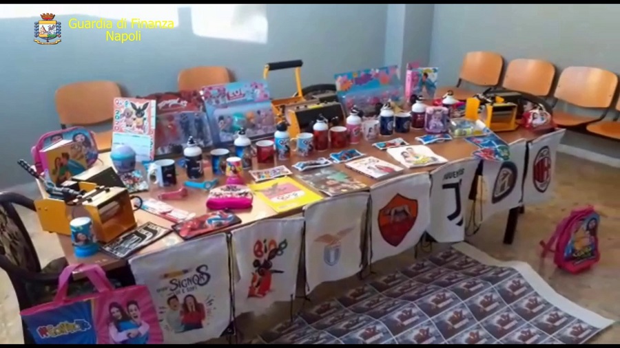 Una fabbrica abusiva dedita alla lavorazione e al confezionamento di prodotti per bambini e adolescenti è stata sequestrata dalla Guardia di Finanza a Pollena Trocchia. I Baschi Verdi hanno scoperto più di 22.400 tra giocattoli, materiale scolastico e tazze in porcellana contraffatti e 1.160 mascherine prive di qualsiasi requisito di sicurezza e con marchi falsi di note griffes e di squadre di calcio. Sequestrate anche 7 presse semiprofessionali. Un 48enne di Napoli è stato denunciato per contraffazione e ricettazione.